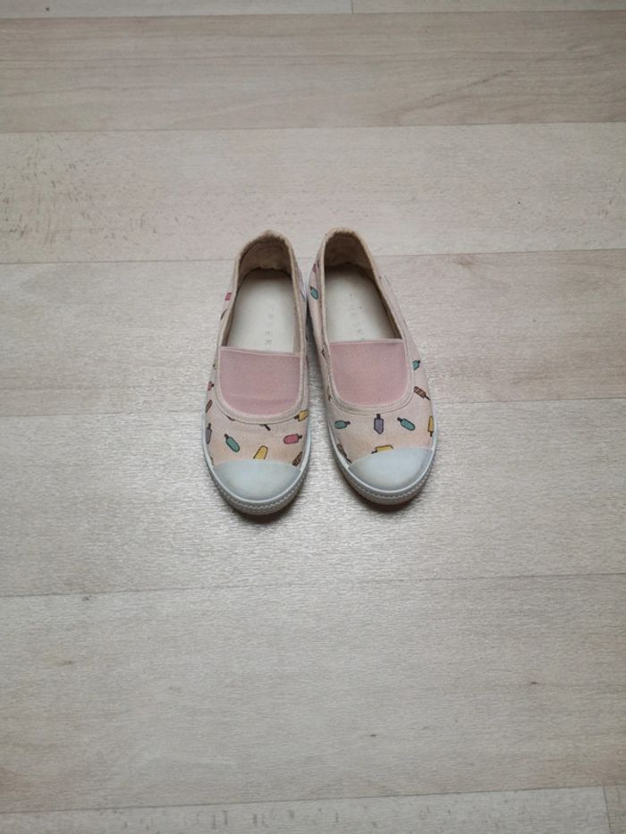 Ballerine enfant de la marque creeks, taille 29. Petites glaces dessiné dessus. Porté seulement en intérieur.