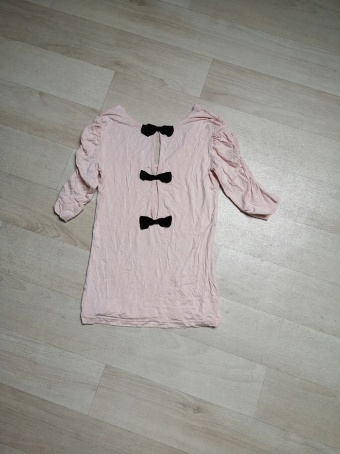 Tee shirt manche 3/4 rose et nœud noir dans le dos. Taille M Très bon état