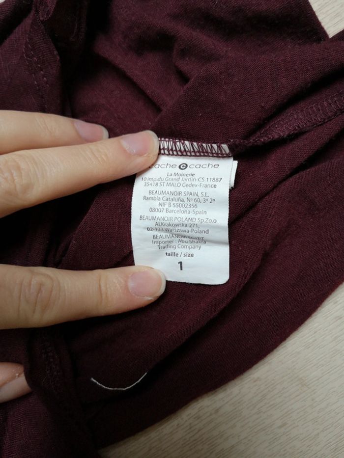 Tee shirt manche 3/4, couleur bordeaux. Marque cache cache taille 1