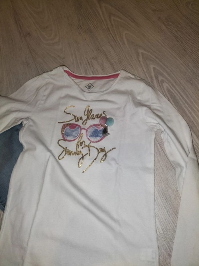 T-shirt 10 ans à longues manches porté quelques fois. Pantalon skinny en jean porté quelques fois en 10 ans.