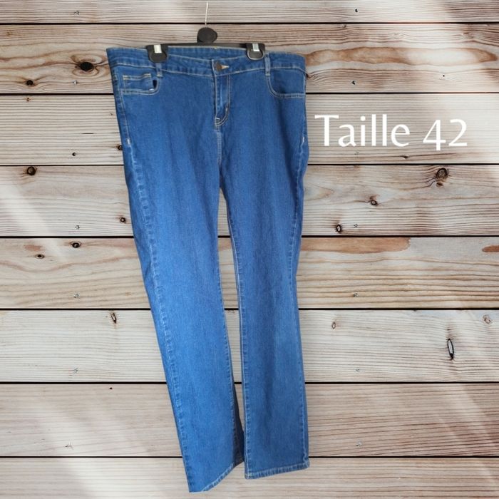 🔹 Jean bleu classique de la marque Carrefour – Taille 42 👖 Coupe droite 💙 Coloris bleu denim intemporel, facile à assortir 🧵 Bonne tenue, tissu confortable, ni trop rigide ni trop stretch ✅ En excellent état, très peu porté 📦 Aucune trace d’usure, coutures intactes, prêt à être porté ! 💡 Idéal pour un usage quotidien, look décontracté ou habillé selon les accessoires 👟👠 ✉️Envois rapide et soigné