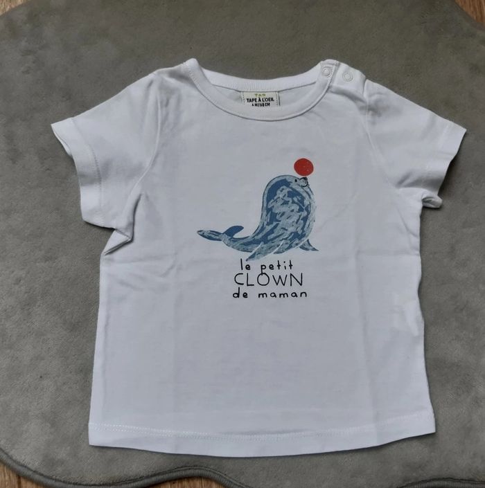 tee-shirt MC tape à l'oeil "le petit clown de maman" 6 mois état comme neuf