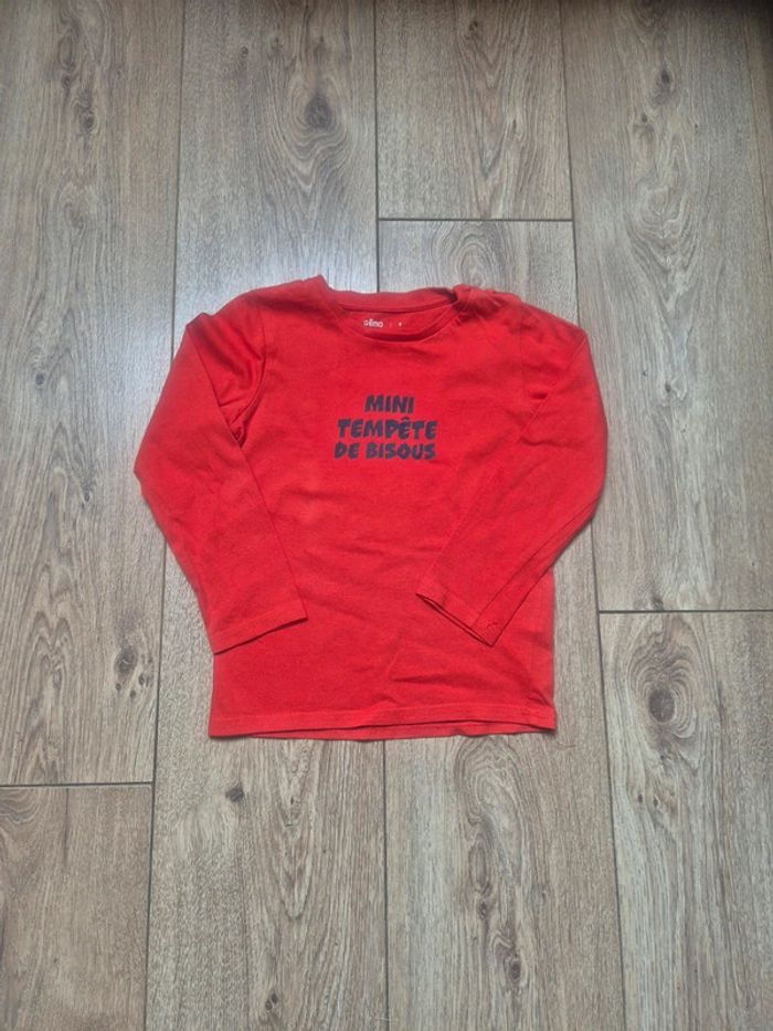 Tee-shirt ML gémo 4 ans rouge "mini tempête de bisou" en très bon état - photo numéro 1