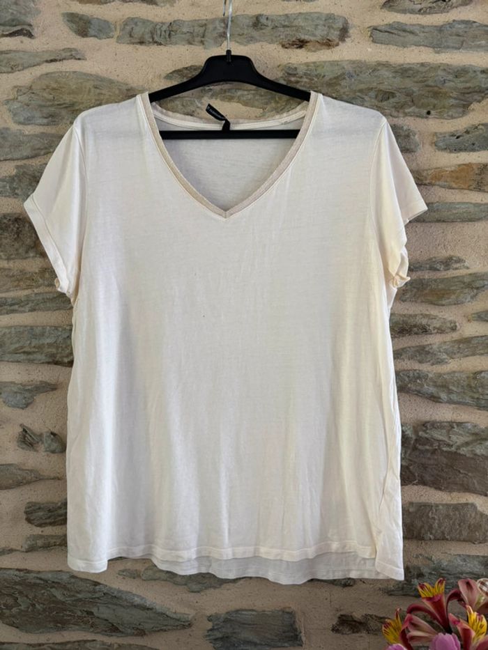 T-shirt, dans les tons beige en taille XL, il est en bon état. À noter qu’il y a une toute petite tache. Les vêtements femme taille XL et XXL ou 42-44 c’est par ici = #tailleXLXXLetou4244