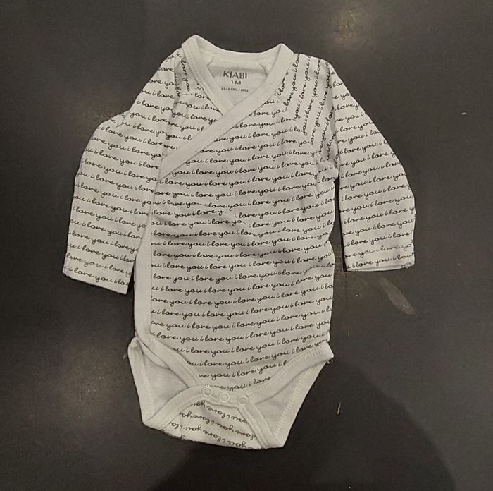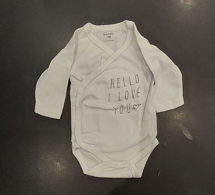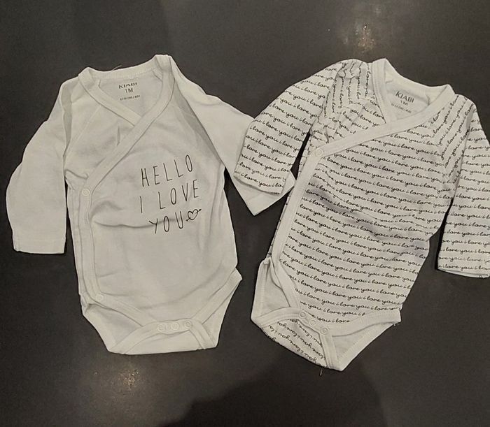 Vend lot 2 bodies manches longues coton. Ouverture devant Blanc marqué " I love you " Taille 1mois 2.5€