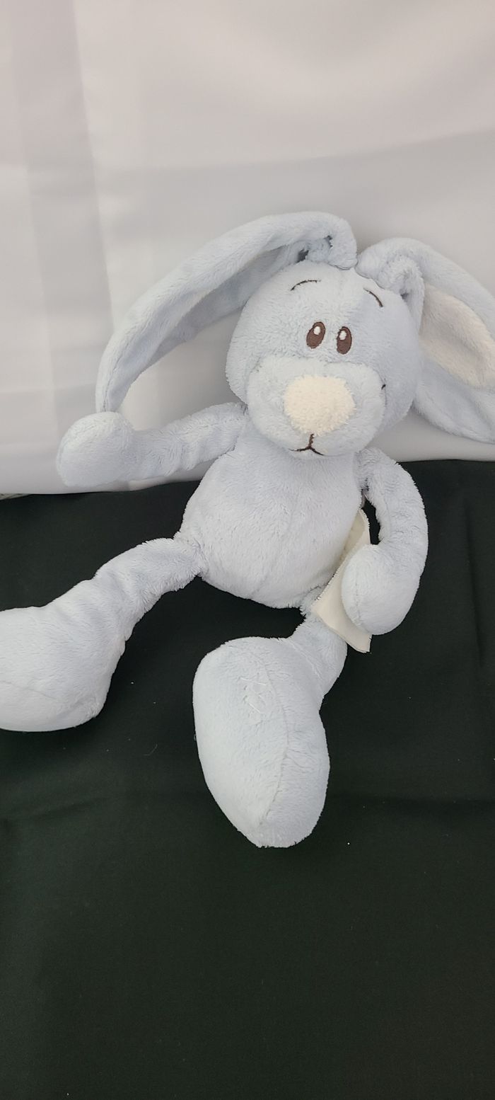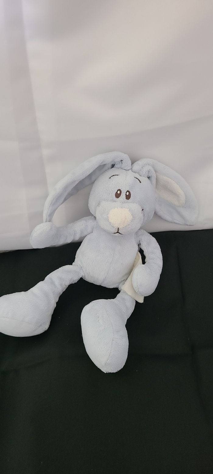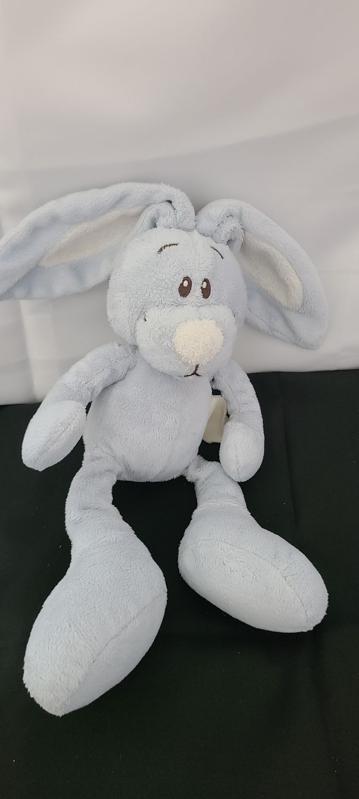 Lapin KIMBALOO doudou bleu et blanc à grands pieds - photo numéro 1
