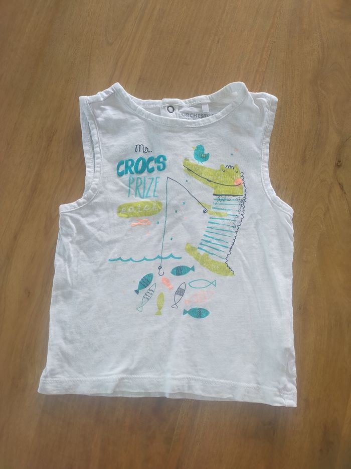 Lot de 3 débardeurs marcels garçon avec motifs animaux. Comme neuf. - modèle blanc avec motif crocodile à la pêche 🐊🎣 Orchestra - modèle vert pastel avec motif pieuvre qui fait du surf 🐙🏄‍♂️ avec sequins, Liberto - modèle gris avec motif crocodile 🐊 écailles en relief, Orchestra Taille 18 mois J'ai énormément de choses à vendre, beaucoup ne sont pas encore publiée, n'hésitez pas à demander si vous cherchez quelque chose de spécial 😉 Les remises automatiques sont activées sur mon dressing.