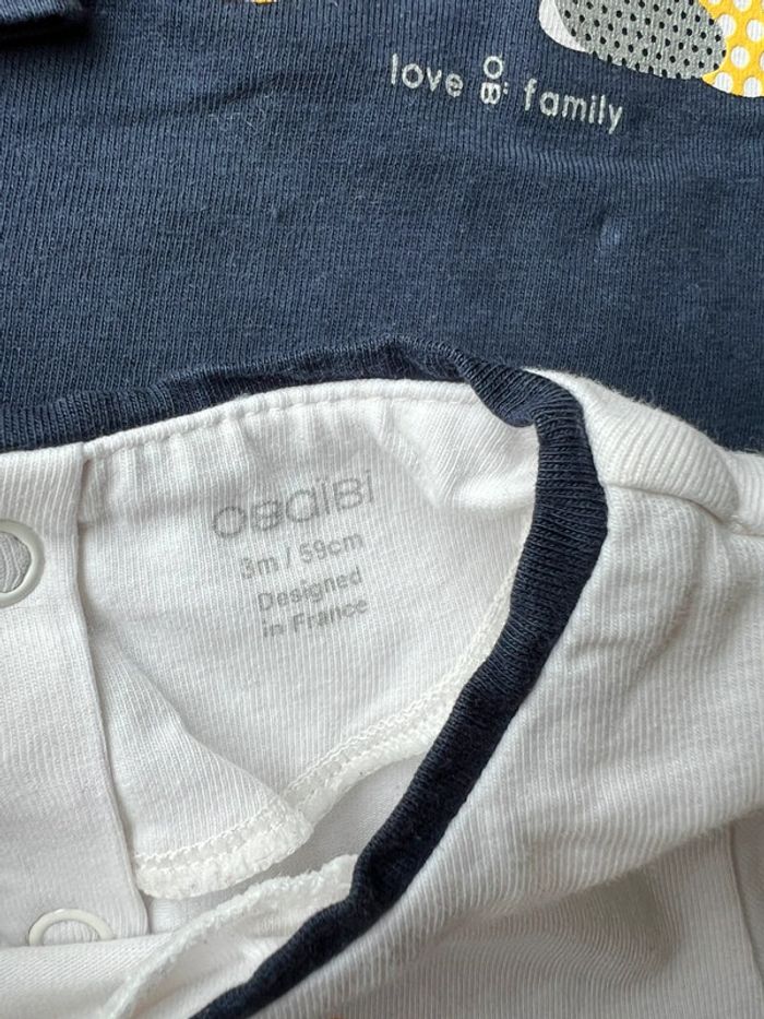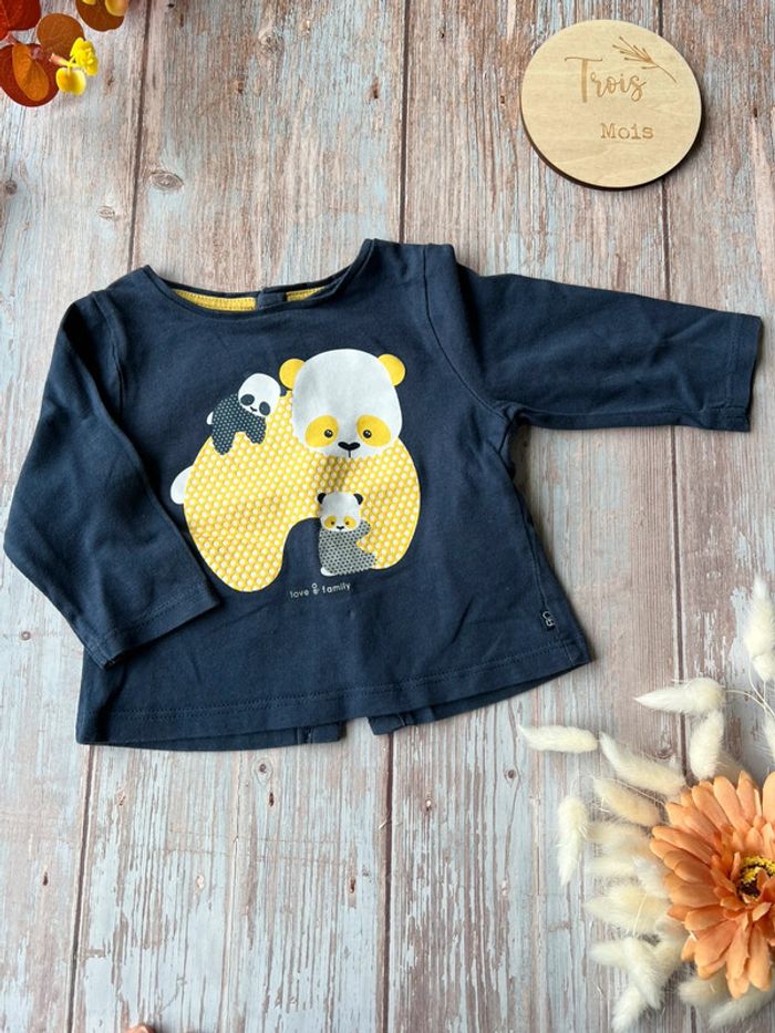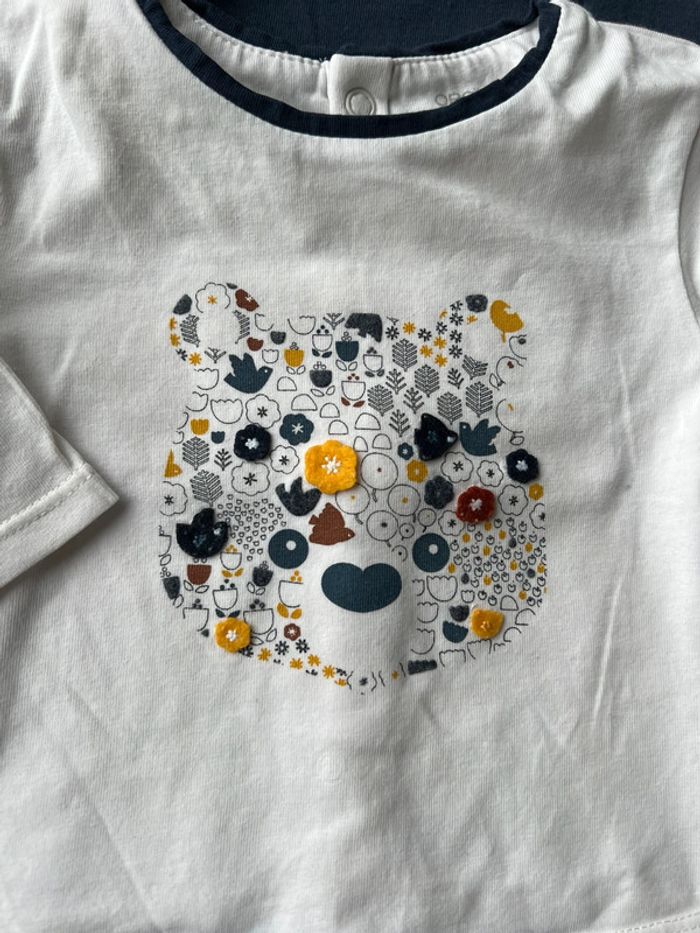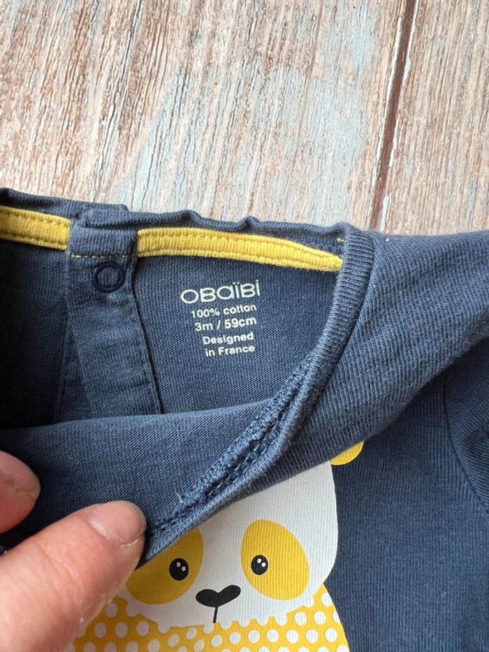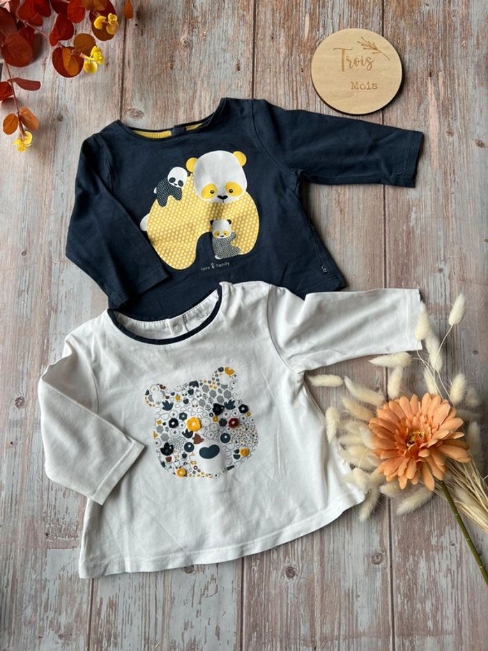 🌺 Marque : obaïbi 🪻Taille : 3 mois 🌼 État : bon 🪷 Précisions : lot de 2 tshirts obaidi motifs ourson panda dans les mêmes tons de couleur (marine et jaune), petite tache sur le blanc visible sur photo 4 🌸 La réduction sur les lots est activée 🌸