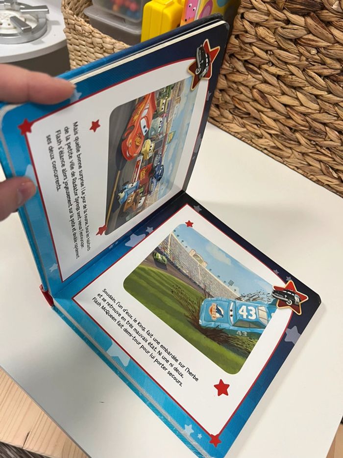 Quatres histoires illustrées de héros de cars Format pages épaisses cartonnées Bon état car petits défauts sur la tranche comme visible sur les dernières photos La réduction sur les lots est activée 😊