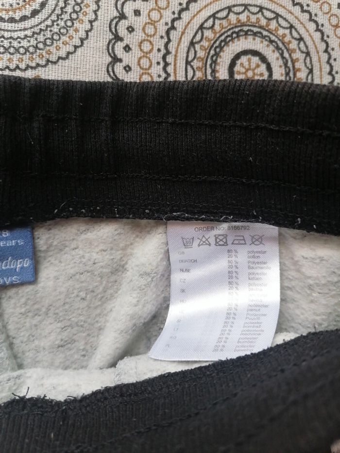 Jogging en bon état général. Pas de trou mais une tâche au genou droit. Peut encore servir pour jouer dans le jardin 😊. Dopodopo. 128cm. 7-8 ans. #manue57260garcon7ans #manue57260garcon8ans