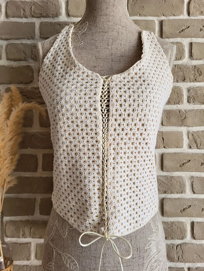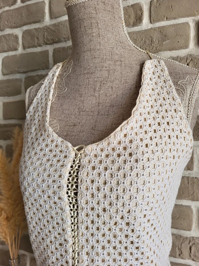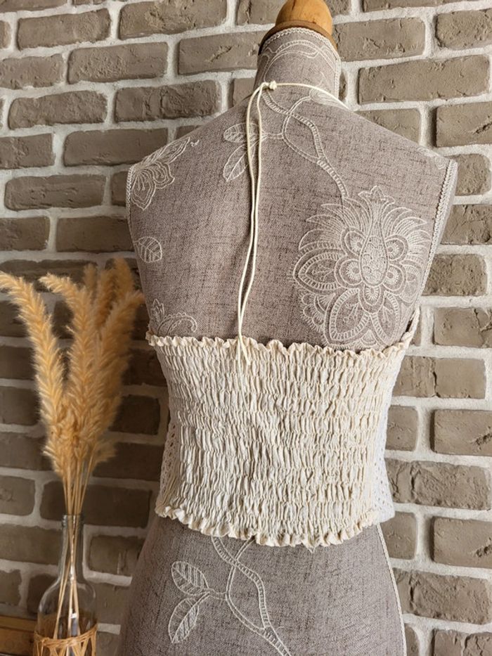 💝 Bénéficiez d'une réduction en créant lot dans mon dressing 🛍️ 🌸 Magnifique top dos nu jamais porté 🎀 Maille crochet entièrement doublé de couleur blanc et crème 🪷 Dos smocké, liens dans la nuque et tressés sur le devant 🍥 Taille Unique, avec son dos élastique, il s'adapte à toutes les morphologies 🩷 Style bohème/champêtre parfait pour l’été, les festivals ou une tenue décontractée mais stylé