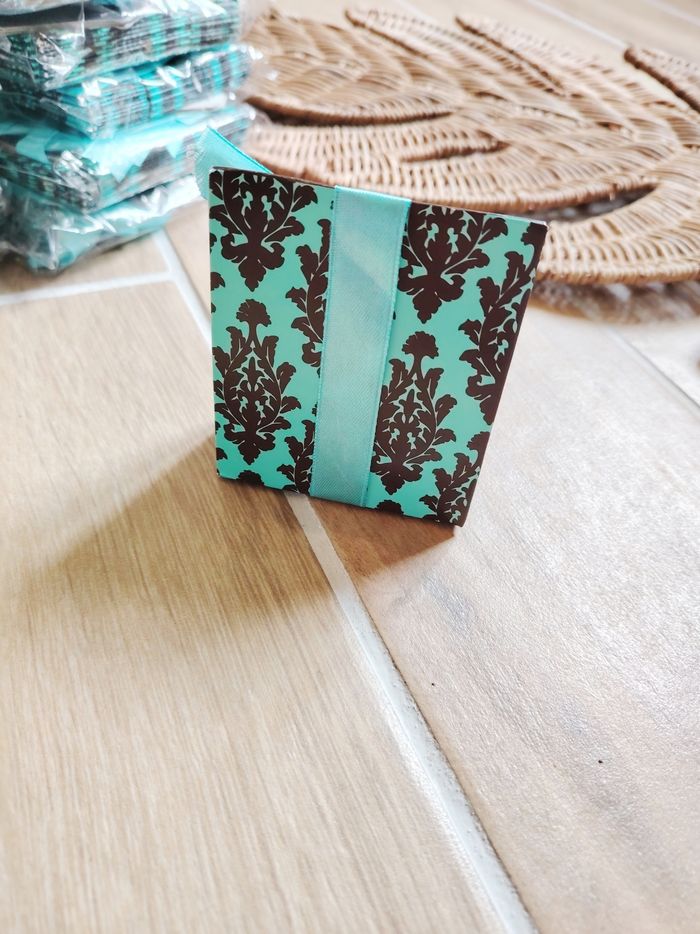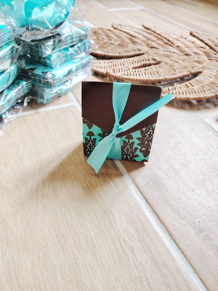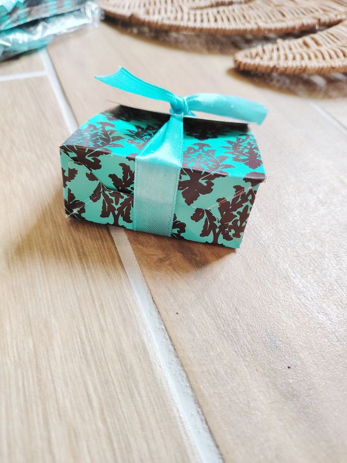 🎊Lot de 80 Boîtes/ contenants à dragées marrons et turquoises avec rubans Neuves - photo numéro 4