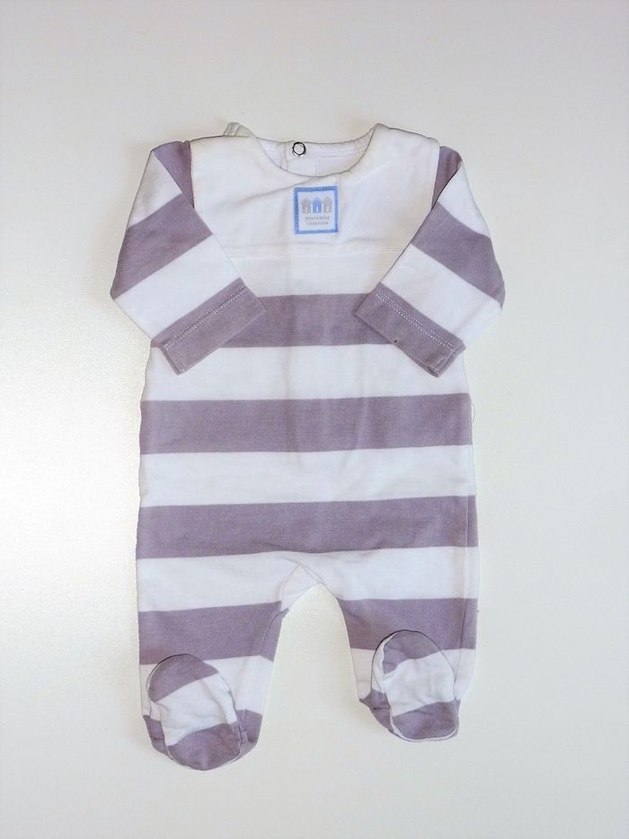 Petit pyjama de marque JACADI en très bon état, en coton, blanc et gris rayé, orné d'un petit motif.