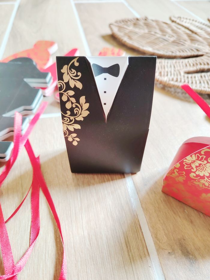 🎊Lot de 60 Boîtes/ contenants à dragées couple de mariés costumes et robes Neuves 🎀Idéal pour ajouter une touche raffinée et élégante à votre décoration de table 🎀Avec rubans pour les robes 🎀Dimensions 30 robes 10x7.5x 3 cm 🎀Dimensions 30 costumes 10.5x6.5x 3cm 🎀La couleur peut être légèrement différentes selon la luminosité de votre écran ❇️N'hésitez pas à créer un lot pour économiser sur les frais de port❇️ Baptême, Anniversaire, Mariage, communion, saint valentin, décoration mariage, déco de fête, décoration de fête, décoration événement, candy bar, baby shower
