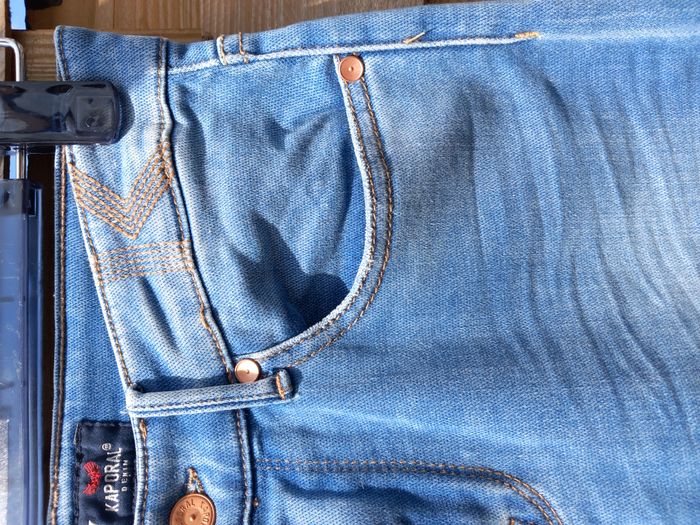Jean bleu effet vieilli Slim standard Détails K (poche avant dos et ceinture) Coton polyester élastane Etat neuf W27 L30 Kaporal