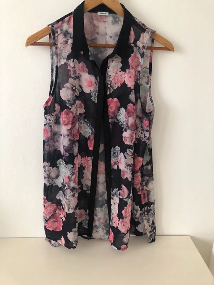 Pimkie blouse sans manches Rose, noire et fleurs - photo numéro 1