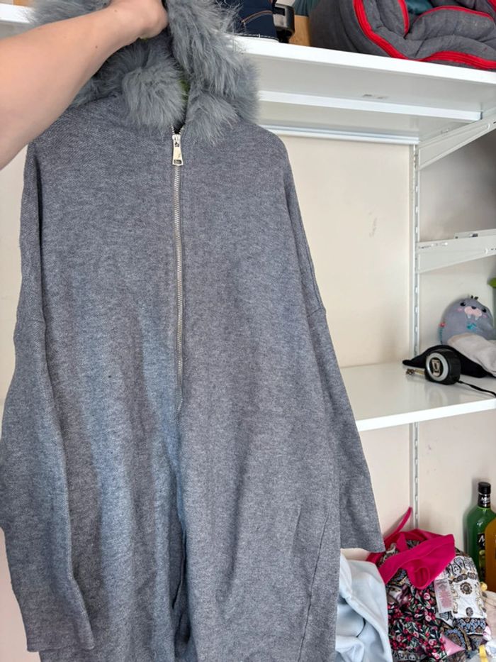 Gilet long gris à capuche