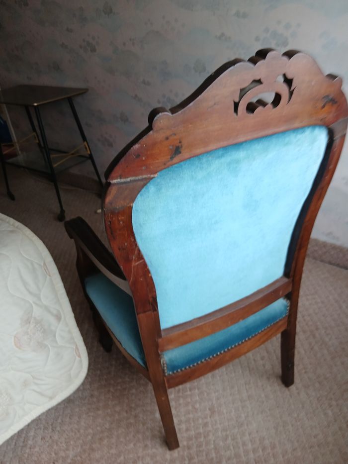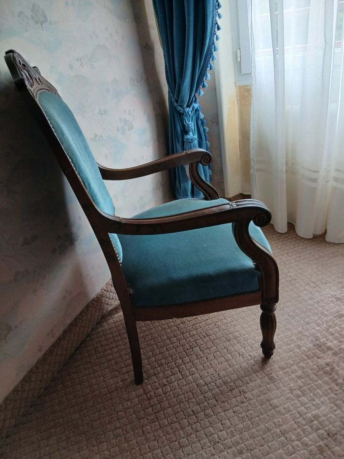 Vends  fauteuil louis philippe bleu velours - photo numéro 3
