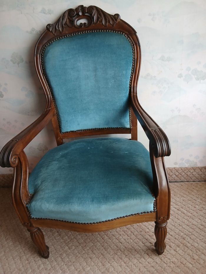 Vends  fauteuil louis philippe bleu velours - photo numéro 1