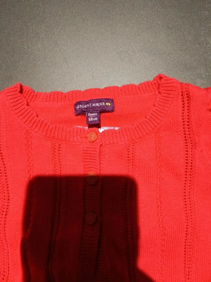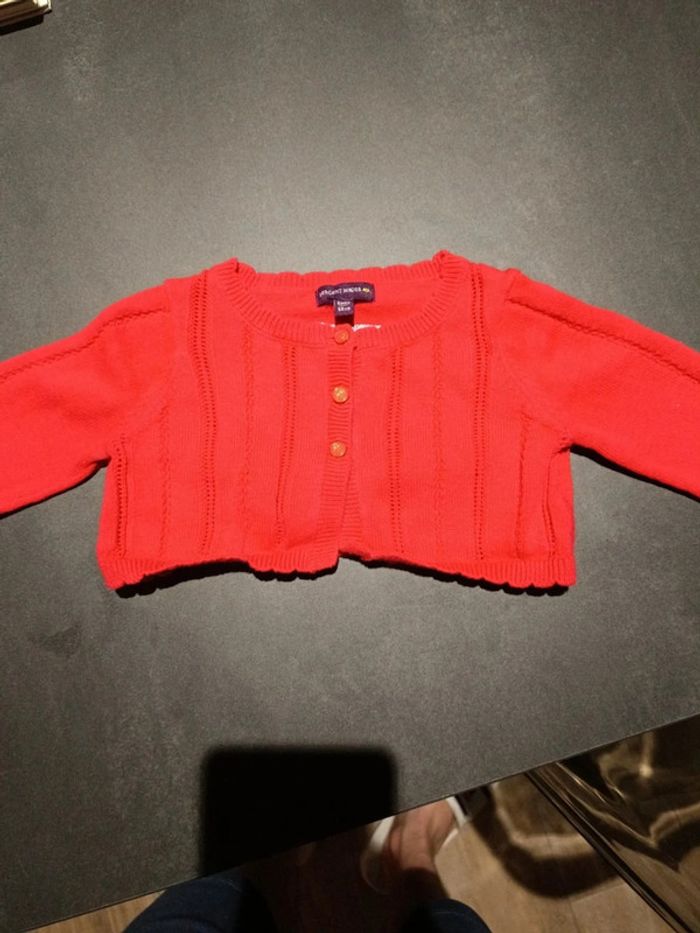 Gilet boléro rose sergent major 6 mois. Étiquette avec le nom. Excellent état