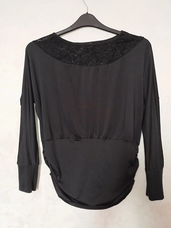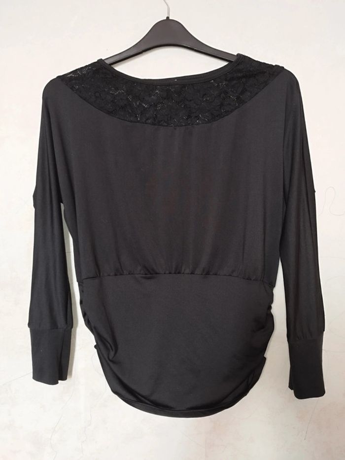 En très bon état. Ses détails tels que le haut du top en dentelle et ses bas côtes drapés lui donne un style fashion. Taille L #topnoir40 #topmancheslongues40 #topelegant40 #lvlk_femmeT40