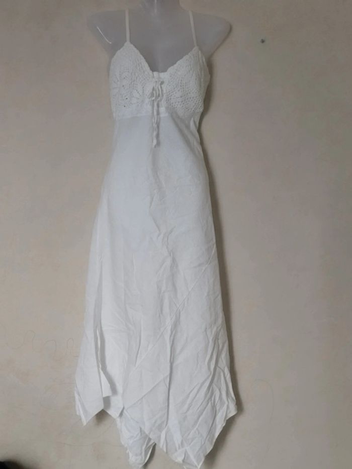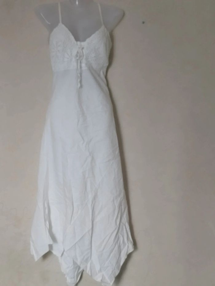 En très bon état T38 En lin Son bas est asymétrique #robelongue3840 #robeete38 #robelin38 #robeblanc38 #robebretelles38 #lvlk_femmeT38