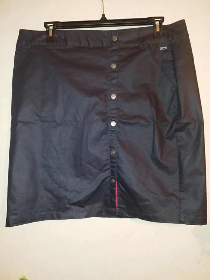 En excellent état. Magnifique design d'une jupe qui se ferme sur le devant grâce à des boutons à pression. #jupemini46 #jupejeans46 #juoeboutonnées48 #lvlk_femmeT48