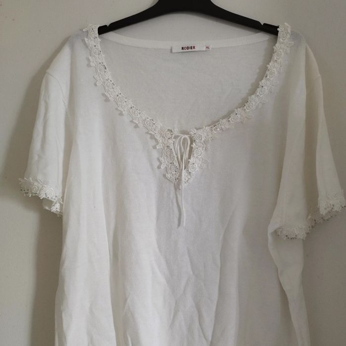 Neuf sans étiquette. Encolure et bas des manches bordés de dentelle et brillants. Très doux 100% coton