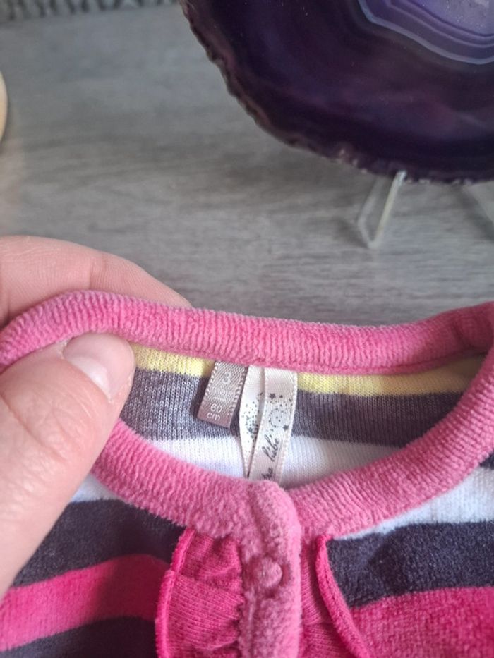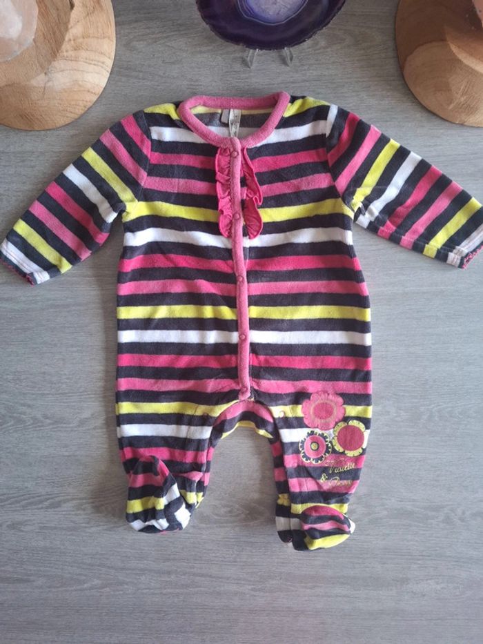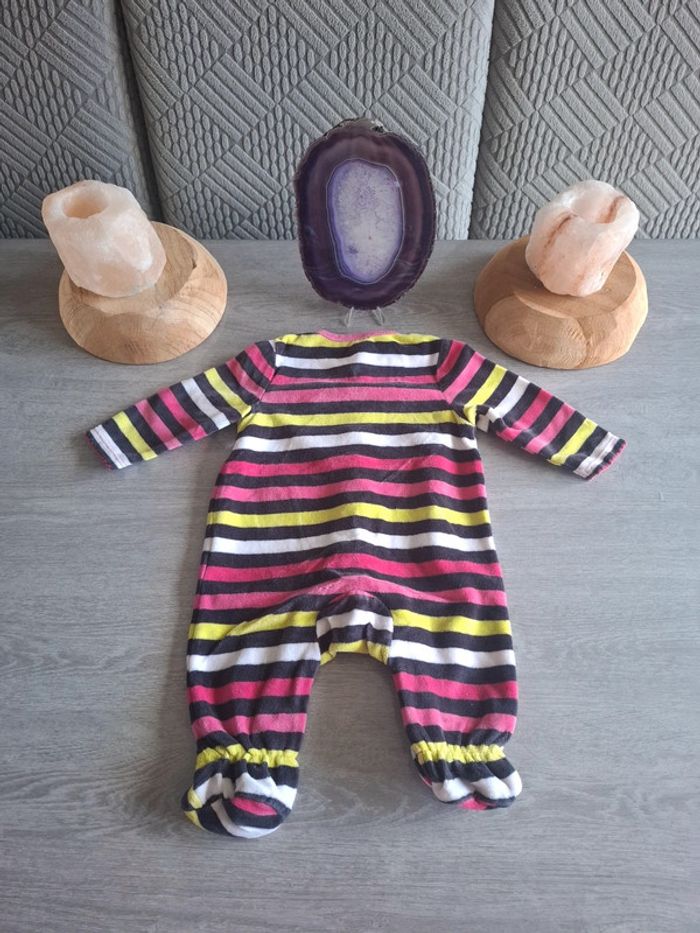 Pyjama bébé 6 mois rayé multicolore en velours – Orchestra – Très bon état - photo numéro 3