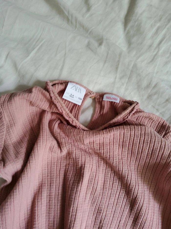 Lot de deux tee-shirts Zara en taille 3 ans. Le vieux rose est en très bon état mais le second, le beige présente une tâche (cf photo).