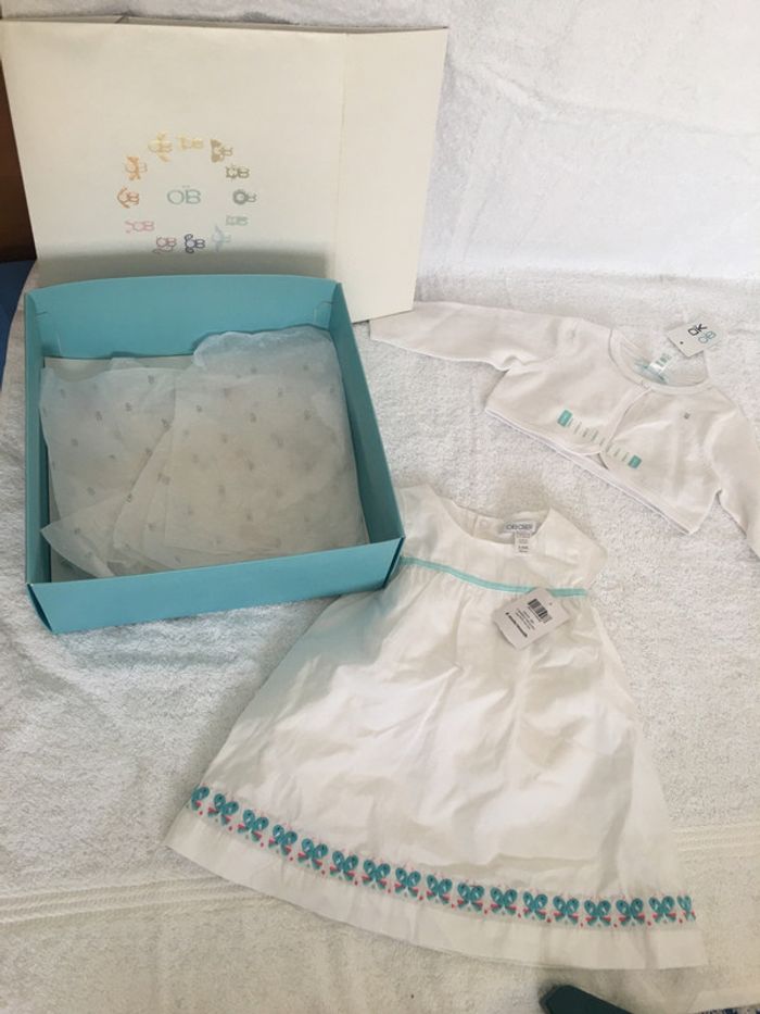 Robe + gilet neuve avec étiquette avec sa boite cadeau 6 mois