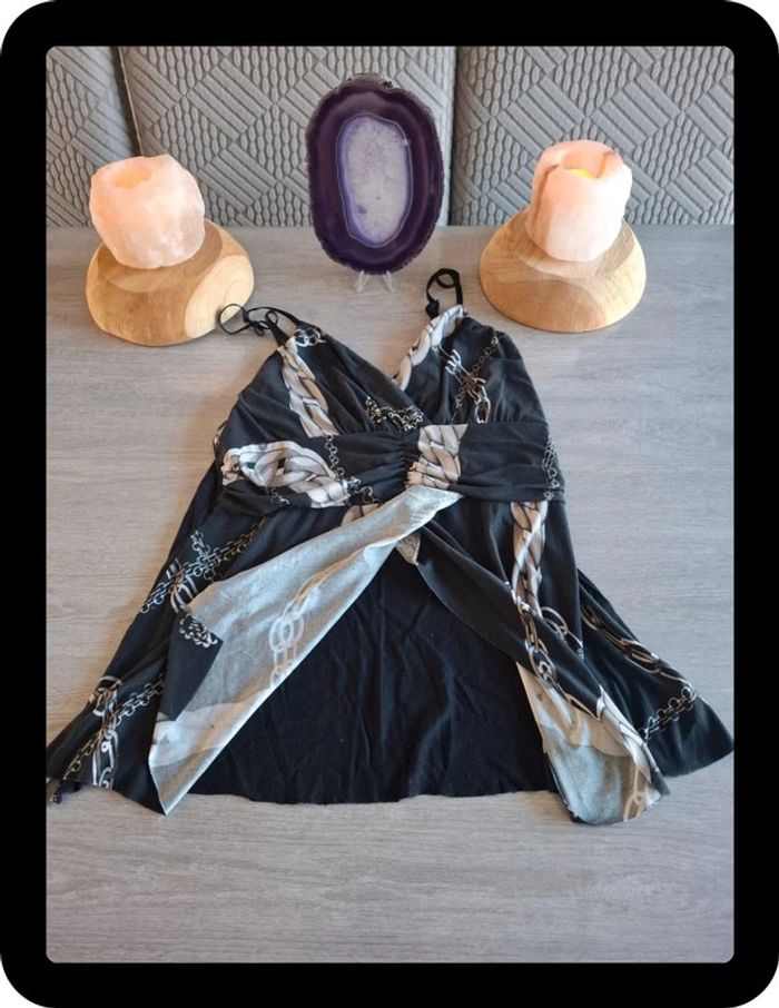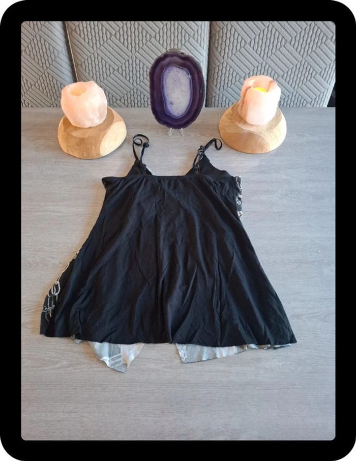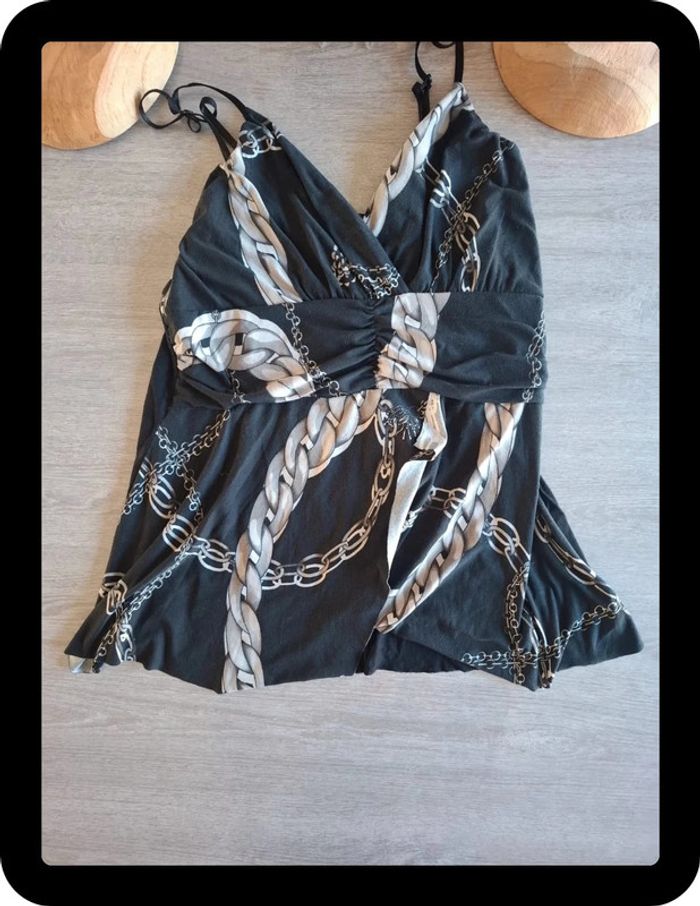 Beau top à fines bretelles En décolleté plongeant en V Ouverte sur le sur le devant au niveau du nombril Dans les couleurs nuancé de gris et noir Très bon état Sans Marque spécifique Envoi rapide et soigné 🌈 📪 tous modes d'envois sauf Vintedgo 📪 Maison non-fumeur 🏠 🌈 pleins d'autres jolies choses dans mon dressing n'hésitez pas à regarder Dressing trié par taille et Réduction 🌈 🎁