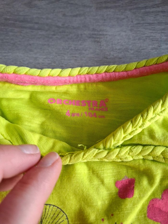 Beau T-shirt de couleur vert pétant Avec imprimé rose et gris foncé Marque orchestra Taille 4 ans Très bon état excepté un tout petit accroc visible sur photos 📷 #sebelo02T4ans Envoi rapide et soigné 📪 tous modes d'envois sauf Vintedgo 📪 Maison non-fumeur 🏠 🌈 pleins d'autres jolies choses dans mon dressing n'hésitez pas à regarder Dressing trié par taille et Réduction 🎁
