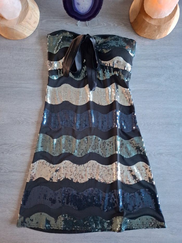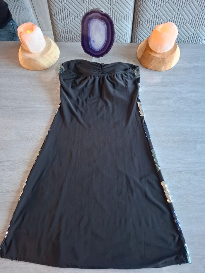 Superbe robe bustier A paillettes de sequins bleu marine argenté et vert de gris La robe est légère et extensible Le reste de la robe est noir Très bon état Taille unique / taille S / taille 36 Idéale pour fêtes, soirée, anniversaire 🎂 et pourquoi pas un mariage #sebelo02T36 #sebelo02TS Envoi rapide et soigné 📪 tous modes d'envois sauf Vintedgo 📪 Maison non-fumeur 🏠 🌈 pleins d'autres jolies choses dans mon dressing n'hésitez pas à regarder Dressing trié par taille et Réduction 🎁