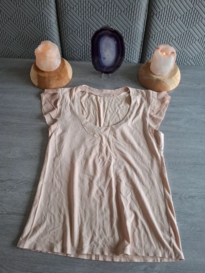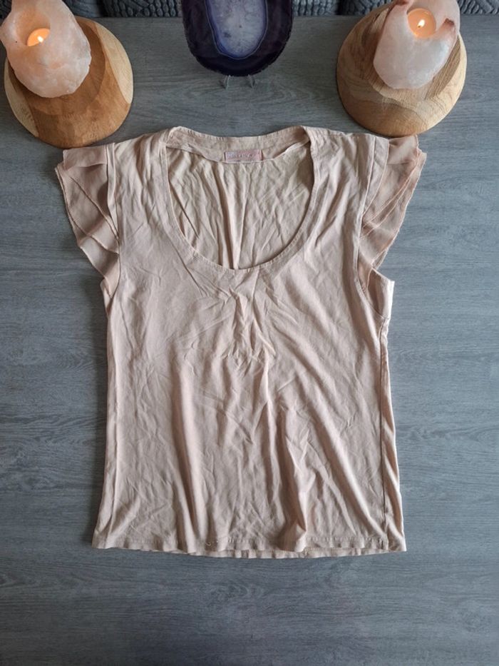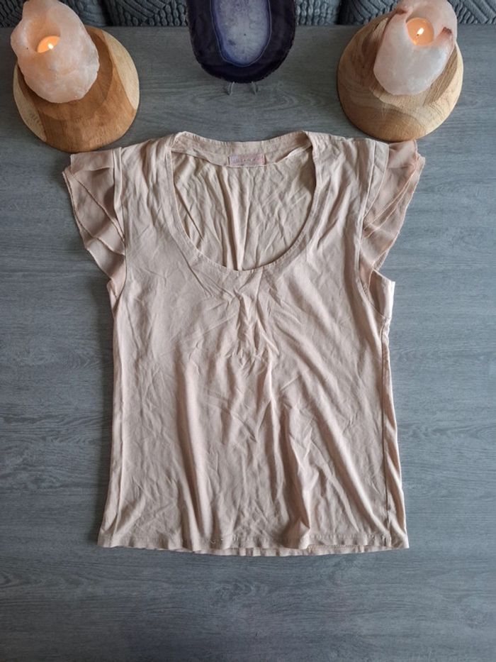 Beau T-shirt à manche courte avec volants aux épaules De couleur beige nude Taille 38 Très bon état #sebelo02T38 ✉️ 📩 Envois rapide et soigné ✉️ 📩 📬 tous modes d'envois sauf Vintedgo 📬 Maison non-fumeur 🏠 🌈 pleins d'autres jolies choses dans mon dressing n'hésitez pas à regarder 🌈