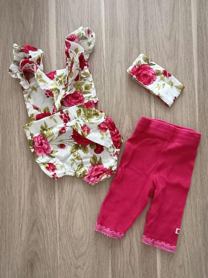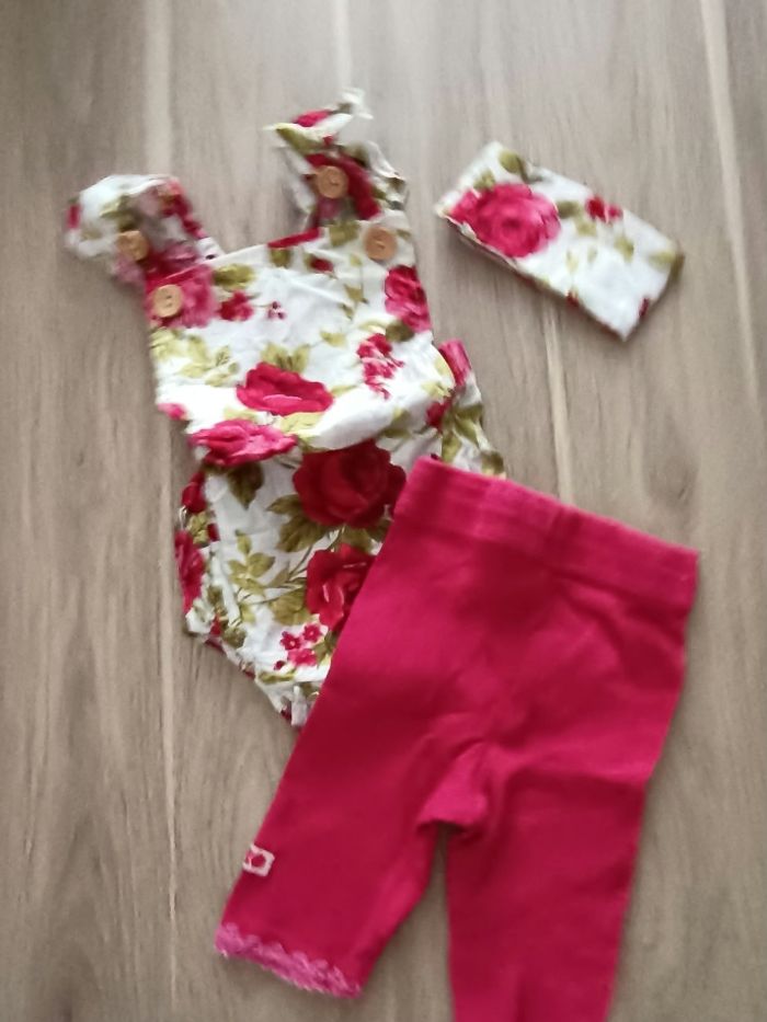 L'ensemble est en très bon état Ce lot comprend : Un legging Un body Un ruban/bandeau Taille 6 mois (70 cm) Les vêtements sont un peu froissés car ils sont stockés dans des sacs sous vide, merci pour votre compréhension.
