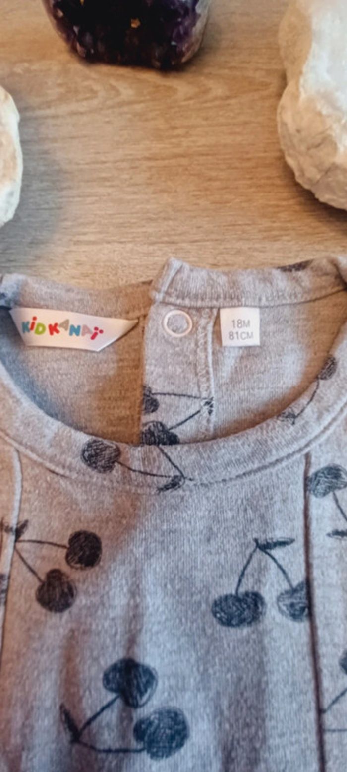 Belle robe en coton se couleur grise imprimée cerise noire Excellent état Taille 18 mois Marque kidkanai #sebelo02T18mois