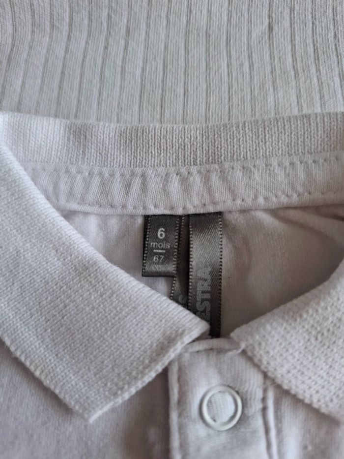 Lot de 2 bodies blanc à manche courte Dont un avec un col polo Différentes marques telles que orchestra Taille 6 mois Très bon état #sebelo02T6mois Envoi rapide et soigné