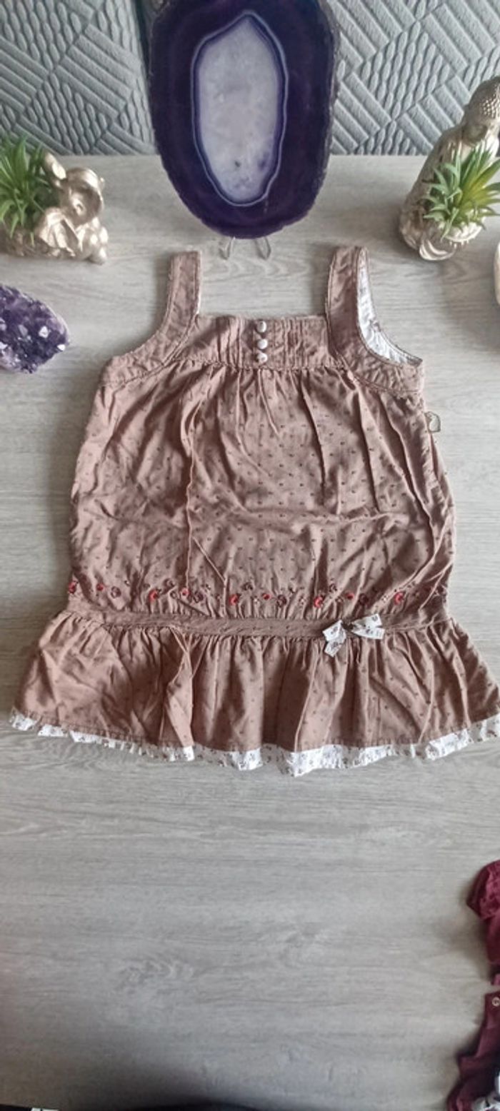 Très belle robe à volant de couleur marron taupe à petite bretelle Taille 24 mois Marque sergent major Excellent état #sebelo02T24mois