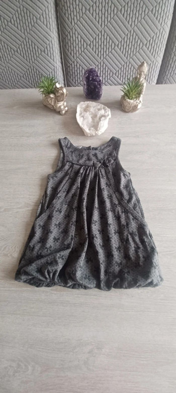 Belle robe boule de couleur gris foncé Imprimé noeud gris plus prononcé Taille 24 mois Bon état général A des traces d'usures telles que des bouloches #Sebelo02T24mois