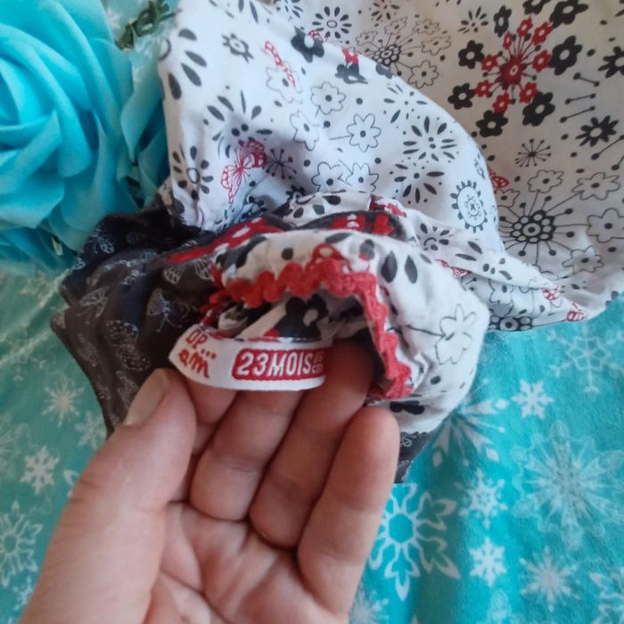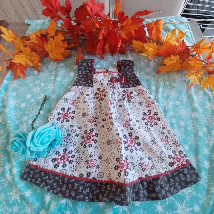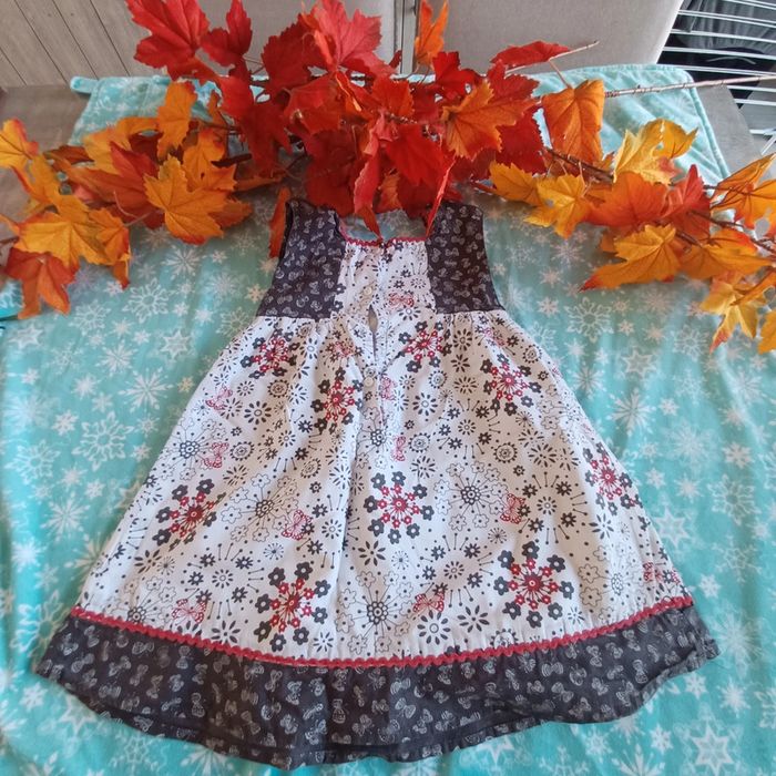 #Sebelo02T23mois Magnifique robe fleurie Taille 23 mois Très bon état Marque dpam Couleur blanc gris et rouge