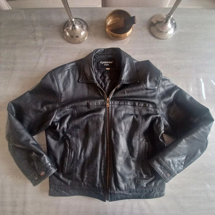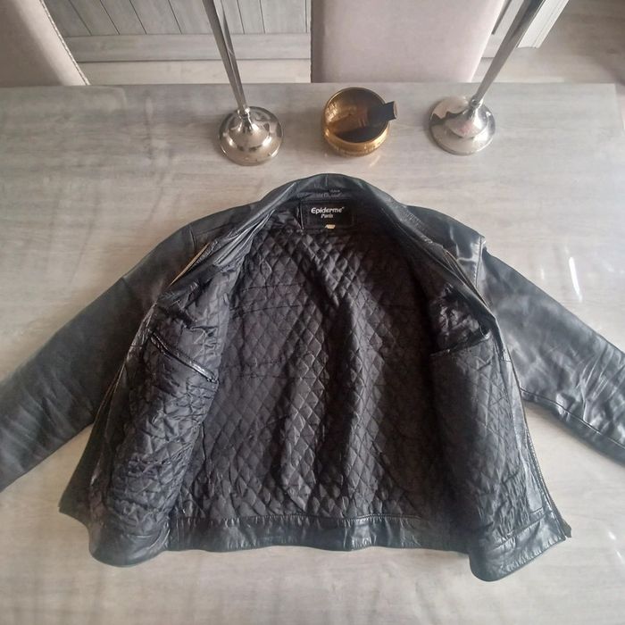 Veste en cuir véritable Taille L de couleur noir Marque épiderme paris En bon état général sauf Une déchirure au niveau de la poche gauche Petit usure au niveau des coudes 1 accroc visible sur 📷 Je suis ouverte aux négociations. Dans la limite du raisonnable.