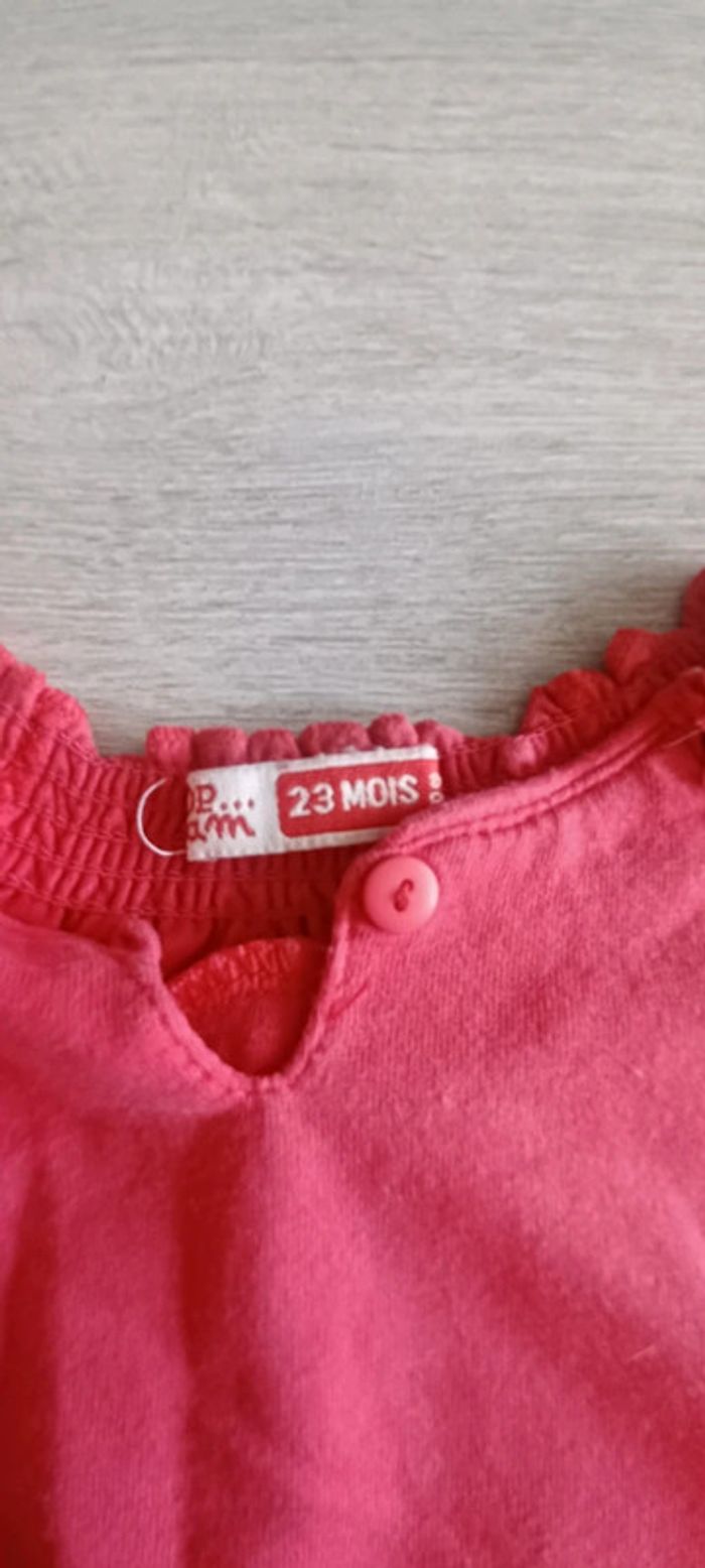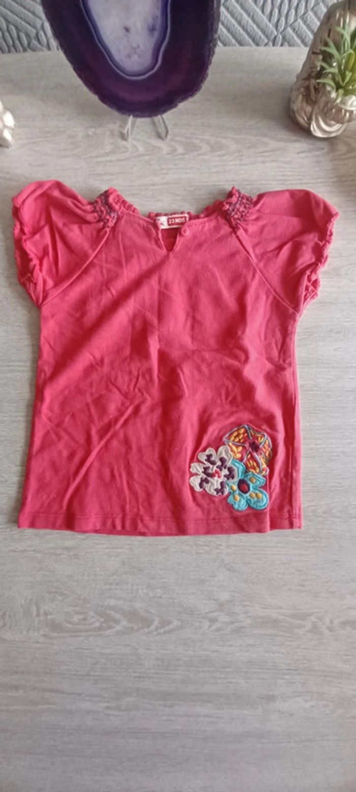 T-shirt en coton de couleur rose bonbon avec broderies fleuries Taille 23 mois Marsue dpam Très bon état #sebelo02T23mois