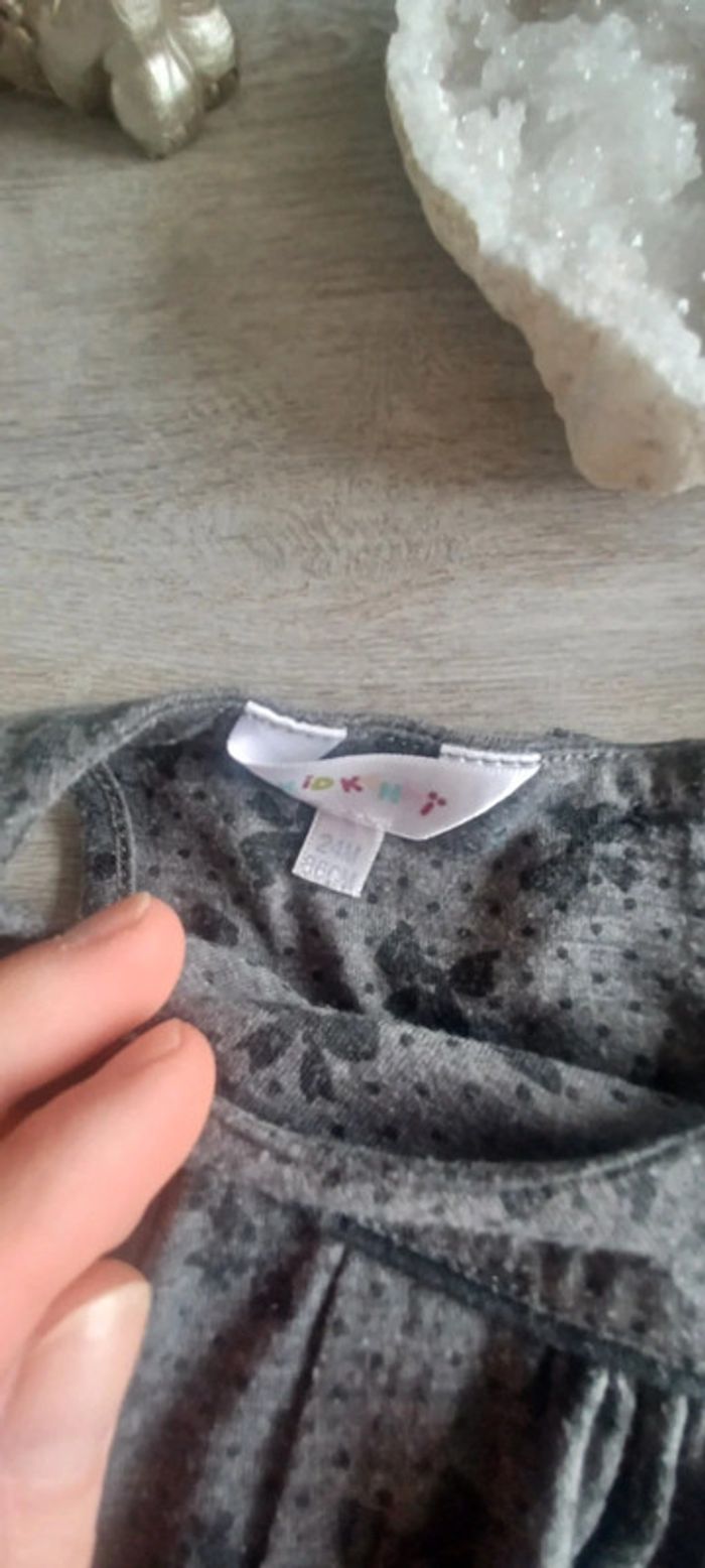 Belle robe boule de couleur gris foncé Imprimé noeud gris plus prononcé Taille 24 mois Bon état général A des traces d'usures telles que des bouloches #Sebelo02T24mois