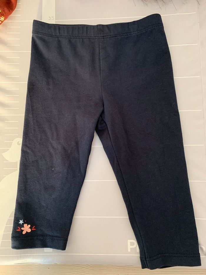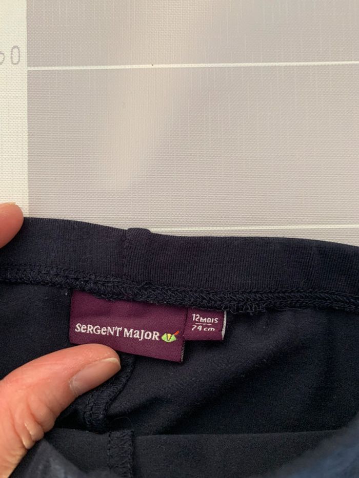 legging fin sergent major 12 mois 74 cm bleu avec fleur en bas à gauche jamais porté