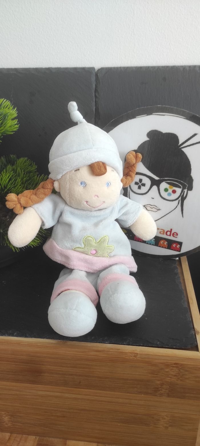 Doudou poupée fille bleu rose peluche fleur marron vert Mots D'enfants Bonnet - photo numéro 1