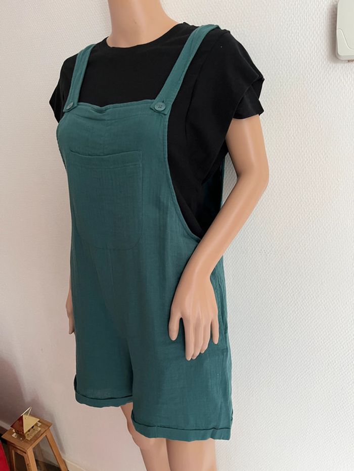 Combi short vert taille 38, 100 % coton T-shirt noir non fourni