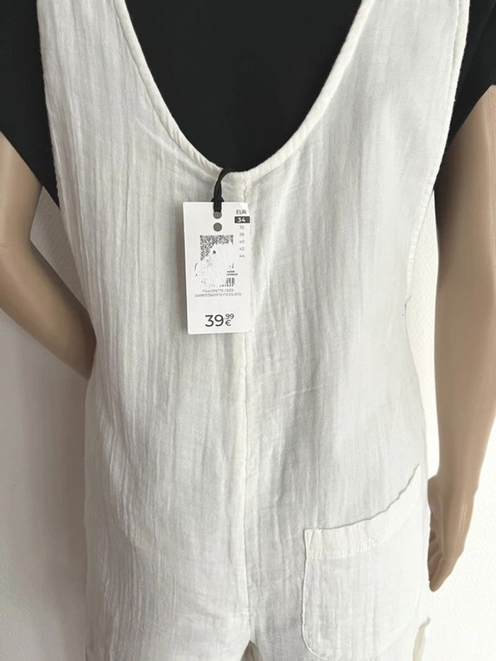 Combi short blanc écru taille 34, 100 % coton T-shirt noir non fourni