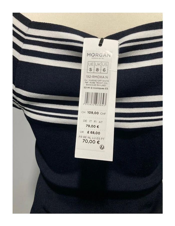 PAS D ENVOI VINTED GO !!! AUTRES TRANSPORTEURS OUI Robe bleue marine et blanche Morgan taille S Neuve avec étiquette, vendue 70 euros en boutique