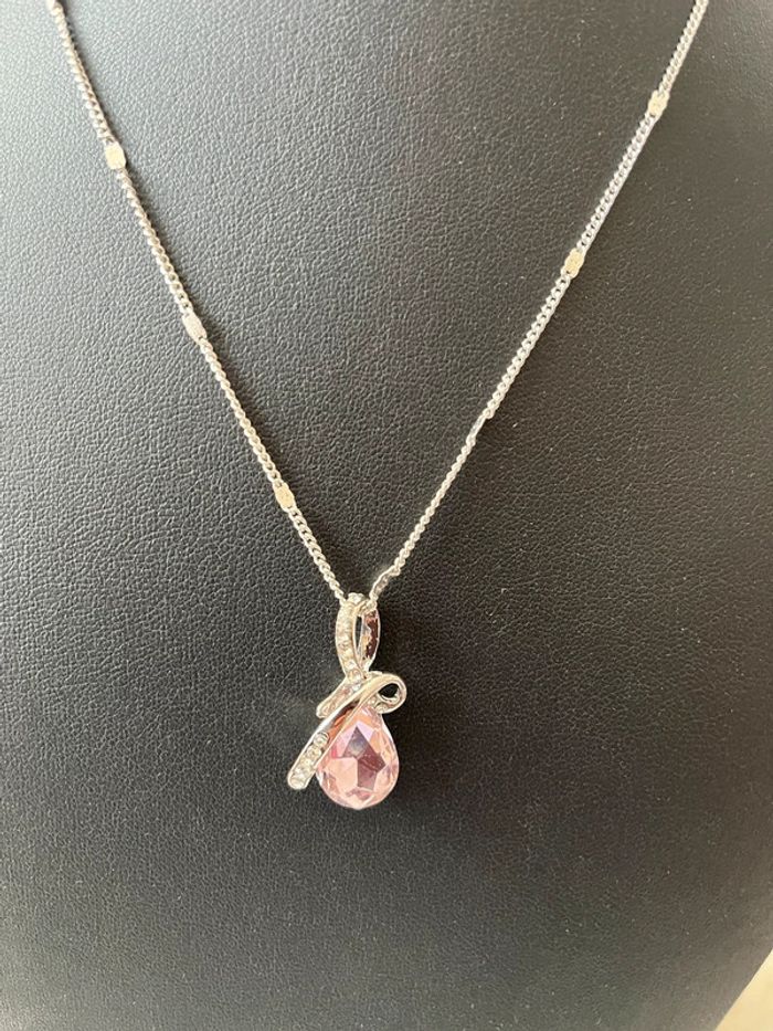 Collier argenté et pendentif rose lilas Chaîne 21 à 27 cm, pendentif 2,5 cm 10€ pour 1 collier et son pendentif Plusieurs disponibles